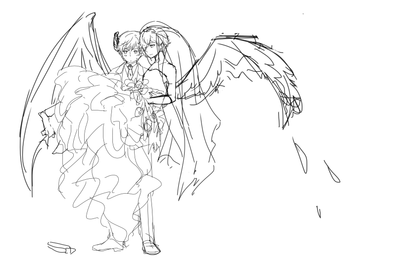 そんなわけでくっそ汚い下書きだけ置いておきます。あ、あと天使と悪魔パロです。