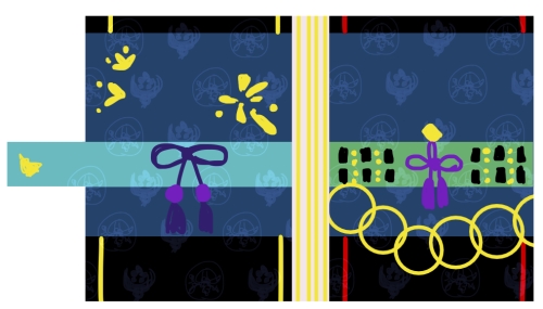位置は畳んだ時絵柄が真ん中にくるよにしたつもりだったんだけど、ちょっと外側にずれている…。