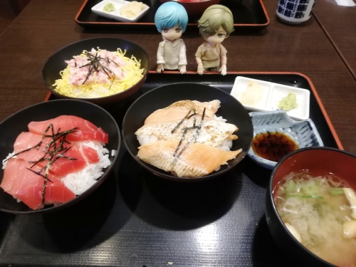 数種類ある中から3つ選べたので、まぐろとかにと炙りサーモンにしたよ!