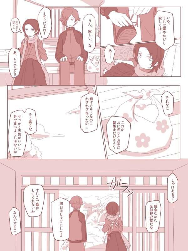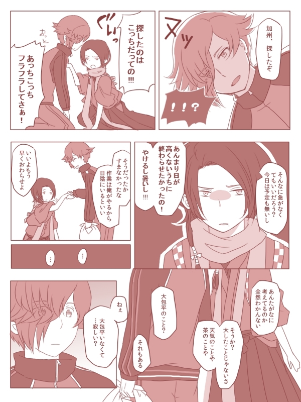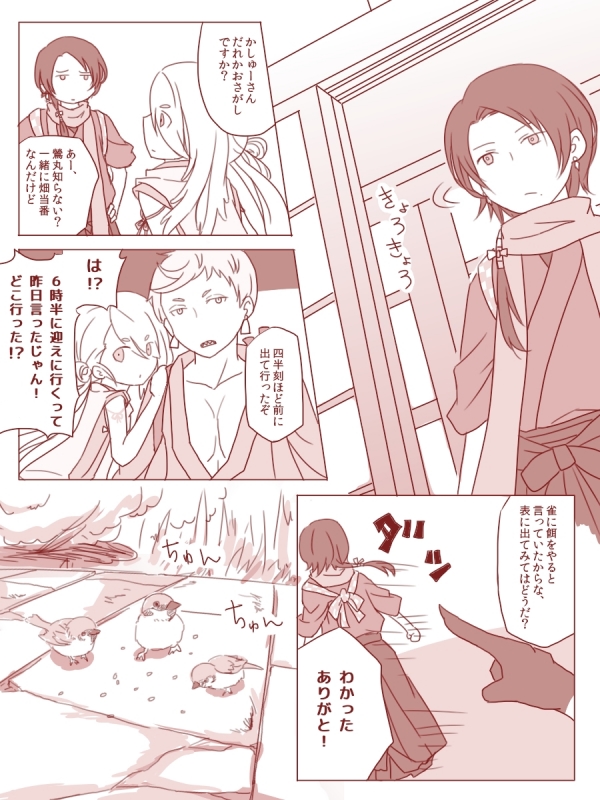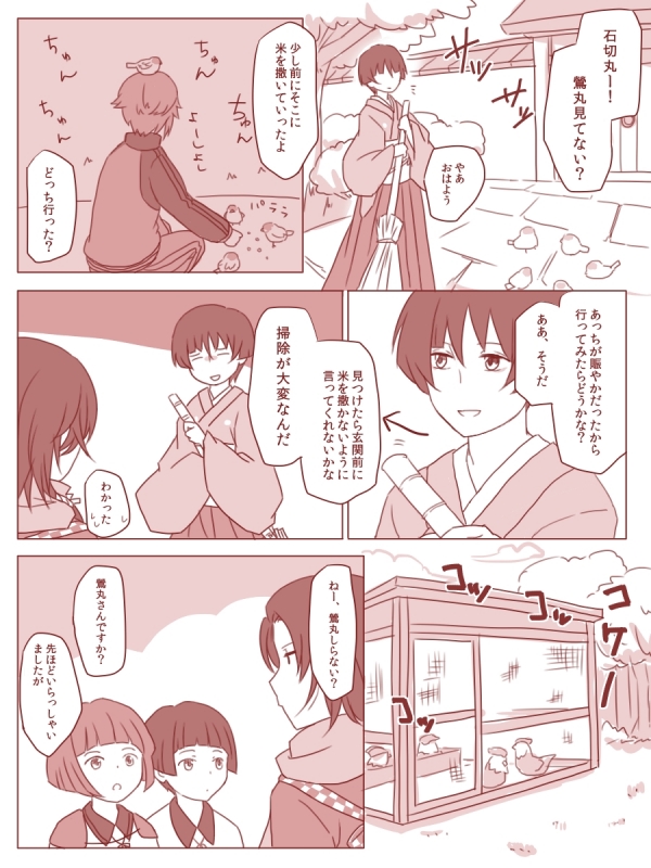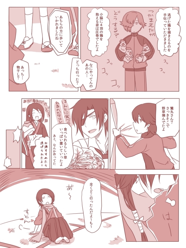 鶯丸さんと清光ちゃんのよくわからない組合せ漫画。