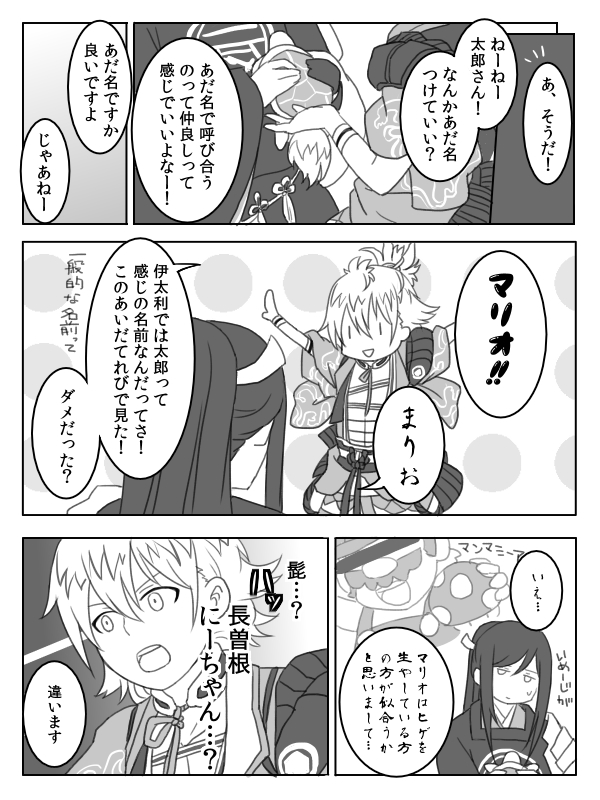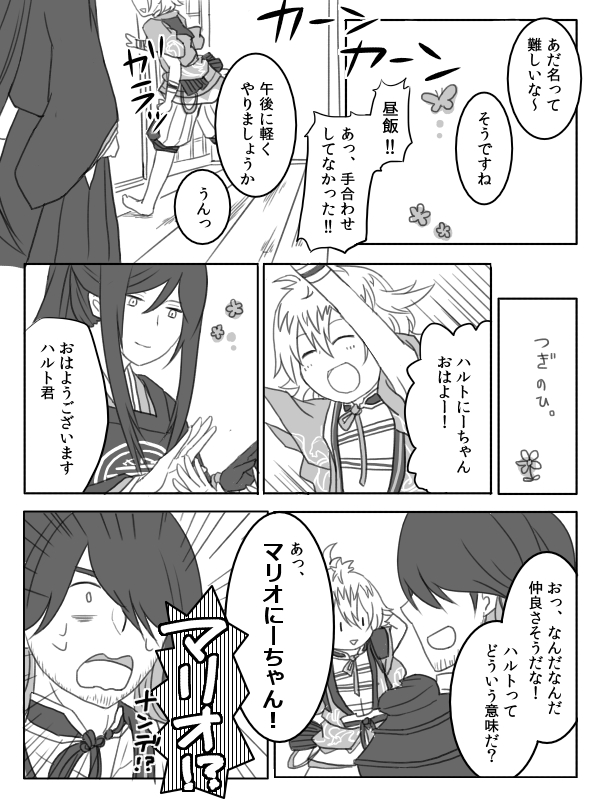 太郎ちゃんと浦島くんのよくわからない組合せ漫画。 もうほんと意味がわからないけどなぜかマリオとハルトがずっと頭の片隅を占拠していて困っていたのです。 どうか太郎という名前を見たらマリオを思い出してあげてください。