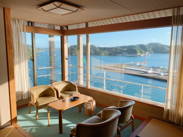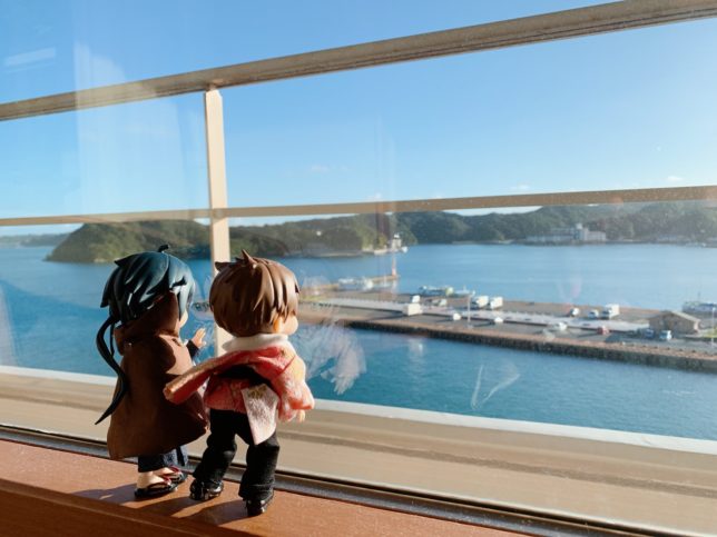 おやつ食べつつ本の装丁の相談なんかをしつつ着きました紀伊勝浦〜!!!