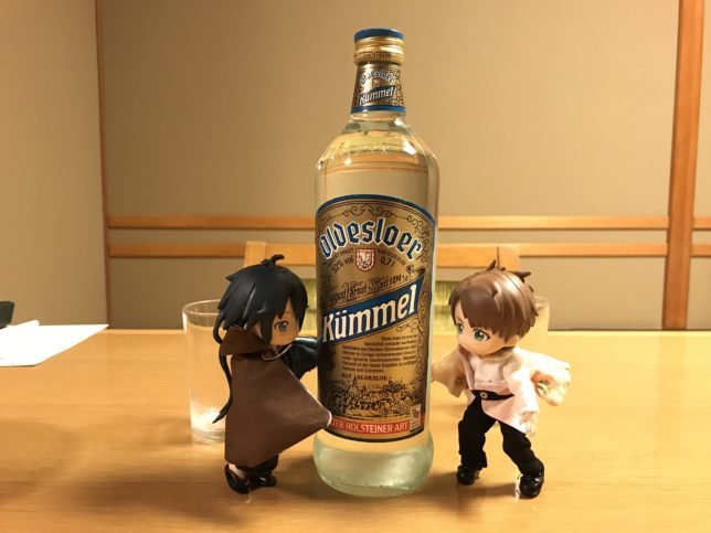 クンメルです!!春夫先生の『芥川龍之介を憶ふ』で二人が飲んでいるお酒!!これはオルデスローエのキュンメル。一番手に入れやすかったのでこれにしたんだけど数種類あるらしい。でもあくはるが飲んでたのはどれかわからないしいいんじゃないかなこれで。作中ではメルヘンの味と評されていたけど、メルヘン…?メルヘンってなに…。きっとこれがメルヘンの味に違いない。。。正直な感想を言っていいでしょうか。太田胃散の香りがしました。クンメルはヒメウイキョウのお酒なんだけど、太田胃散にもウイキョウ入ってるから仕方ないな。度数が高い(32度)のでとりあえずグレープフルーツジュースで割って飲んだんだけど、大変酒に弱い体質なのでほんの少しであっという間に酔っ払ってぐったりしちゃったのが申し訳なかったなぁ…。