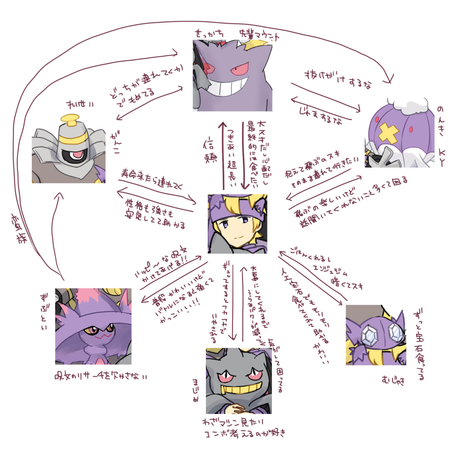 HGSSの再戦手持ちこんなメンツだった気がしてたがさっき調べたらジュペッタいなかったわ。ゲンガー2体だった。まぁポケマスでバディーズになってるしいいか~!
