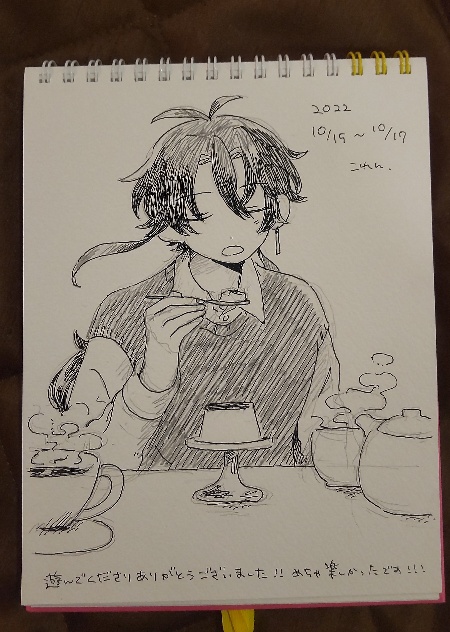 松華堂でプリン食うたわ描いてもらった…!!!!!可愛い…!!!!!!あくはる匂わせコーヒーもある…!!!!!!!