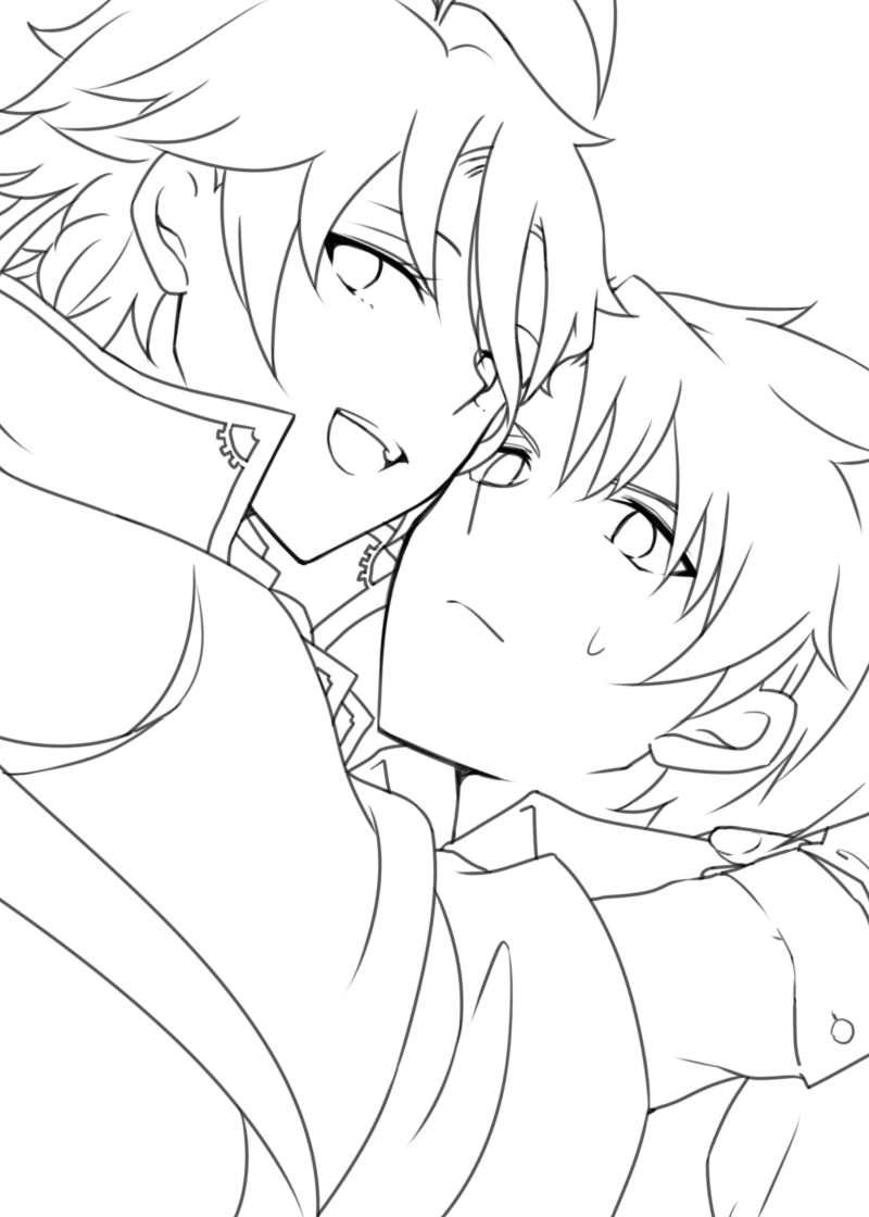 線画まで描いたけど春夫の頭が大きい気がする…。でもたわが小顔なのは事実なので…(立ち絵調べ)