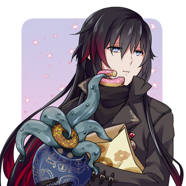 あと彼の目の色よくわからないまま塗ってたんだけど、極秘資料集のドデカ立ち絵見たら薄い青紫?って感じの色だった。それにしても薄い…ほぼ透明じゃない?そこらへんが人外っぽさを感じる一因でもありそう。