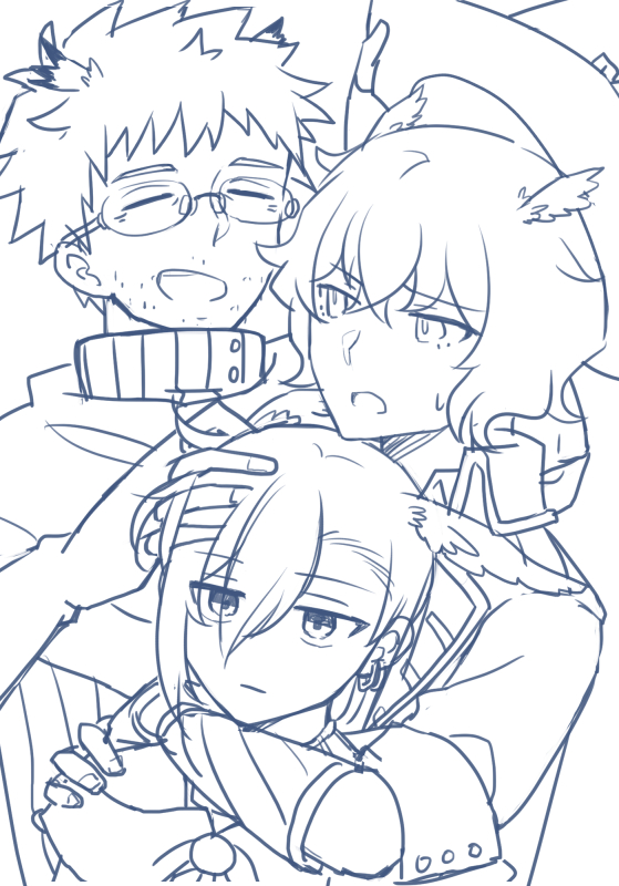 トライバード号の航空士3人衆。線画がなかなか終わらん。
