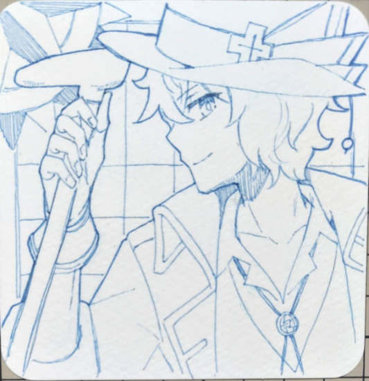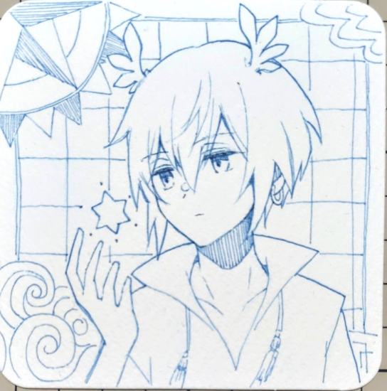 ユニボールワンが耐水性だと聞いたので手近なとこにあったやつで線画描いたんだけど、なかなかいい色でいい感じです。インク色は多分ネモフィラブルーだと思います。数年前に買ったやつだから自信がない。やる気が出たら塗ろ~。滲まないといいな。