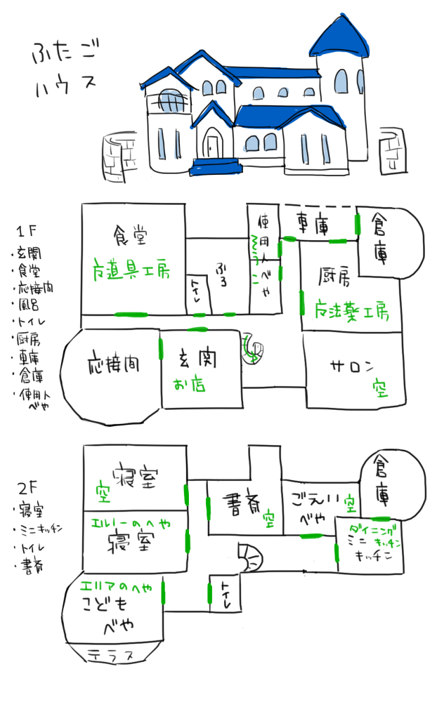 双子の話を書くにあたって家の詳細がどうしても必要になったので急遽描きました。字がクソだけど頑張って読んで。