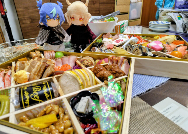 このおせちはジャパネットのやつだって言ってたな、たしか。手前の洋風のやつにバナナ味のあんこ玉入ってて意味わからん味してて笑っちゃった。最近のおせちってすごいね。